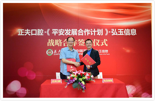 弘玉信息执行总裁王杰先生与正夫口腔董事长杨瑞锋先生就战略合作签约,标志着正夫口腔·《平安发展合作计划》·弘玉信息的战略合作关系正式确立。相信在未来的日子里,大家将同心协力,共同营造一个和谐、安全、专业的口腔医疗环境。