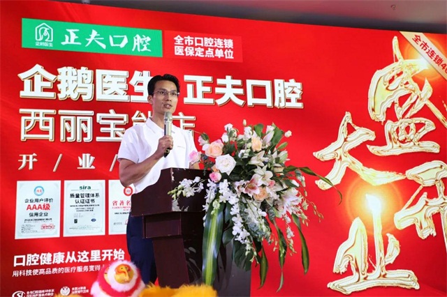 首先,由企鹅医生·正夫口腔医疗副总张运发先生在庆典仪式上致辞。在致辞中,张运发先生宣布企鹅医生·正夫口腔西丽宝能城店正式开业,并向前来参加开业庆典的各位嘉宾、各位朋友表示热烈的欢迎,衷心的感谢!