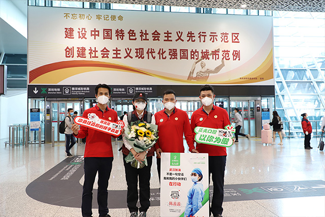 正夫口腔援助湖北武汉抗疫英雄陈蕊蕊平安归来,降落在深圳市宝安机场。正夫口腔高层领导亲自前往宝安机场迎接,向英雄致以崇高敬意和诚挚感谢。