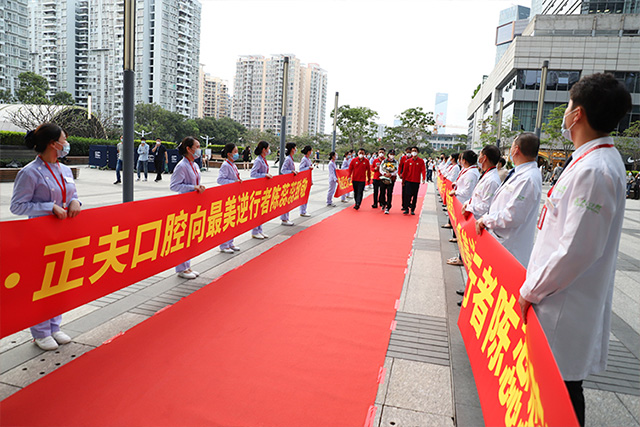 正夫口腔集团领导和同事们列队欢迎