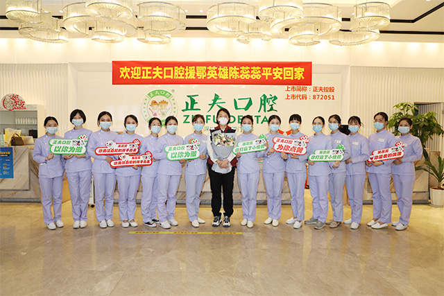 “为什么这么说?这次疫情让我学会了珍惜。在一个团队,最重要的是要学会团结,正夫给予了我很多正能量。也给予我懂得什么叫团结,让我走出门外不给正夫丢脸。领导对我的关心也特别多,去到武汉也收到很多的关心问候短信,让我很感动,给我心里很大的鼓励。我的鼓励不仅来自与家人、朋友,我觉得更多的来自于我的单位--正夫口腔的家人们,不仅为中国而骄傲,还为正夫而骄傲。“ 陈蕊蕊激动的说。