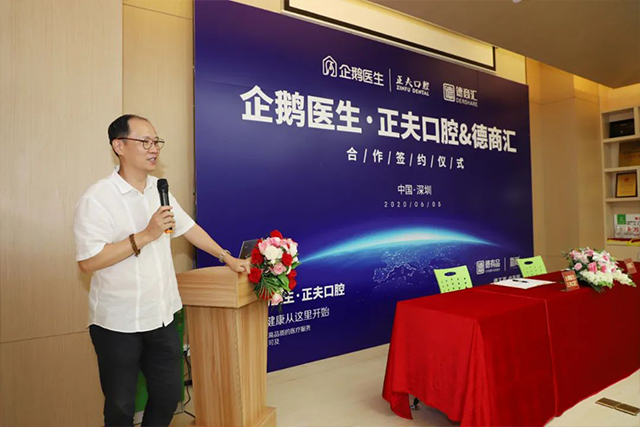 企鹅医生·正夫口腔董事长杨瑞锋先生在开场致辞中说道,“本次企鹅医生·正夫口腔与德商汇的深度融合,将给更多受众服务,同时相互赋能壮大,将正夫口腔的势能潜力激发。”
