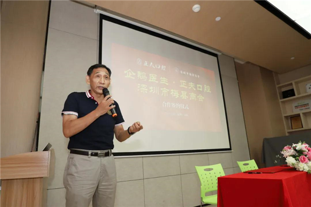 正夫口腔董事长杨瑞锋先生在致辞中说道,“此次是两个平台的强势联盟合作,企鹅医生·正夫口腔希望能与深圳市梅县商会深度融合,给更多受众服务,相互赋能壮大,将正夫口腔的势能潜力激发。”