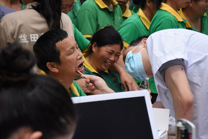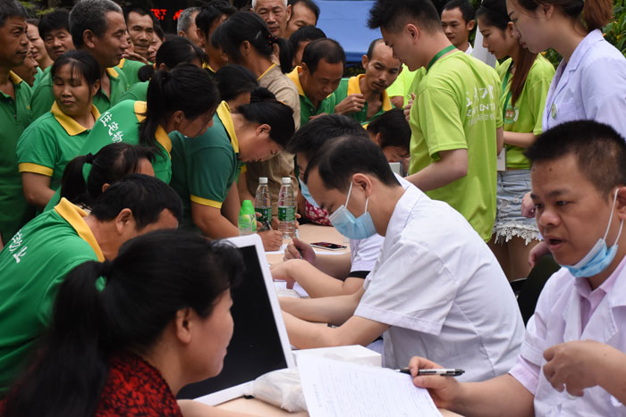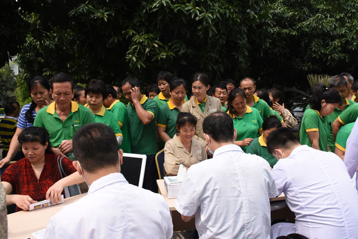 2016年5月1日早10点,活动现场已经人潮涌动。环卫工们都纷纷排着队等待着口腔检查。