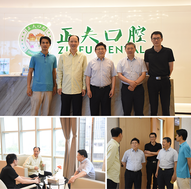 2017年5月23日,武汉大学口腔医院名誉院长樊明文、江汉大学口腔医院董事长李宗族一行莅临正夫口腔,在正夫口腔集团董事长杨瑞锋及公司高层领导热情的接待下,参观了正夫口腔总部和明星旗舰店,并就三方战略合作展开深入的交流。