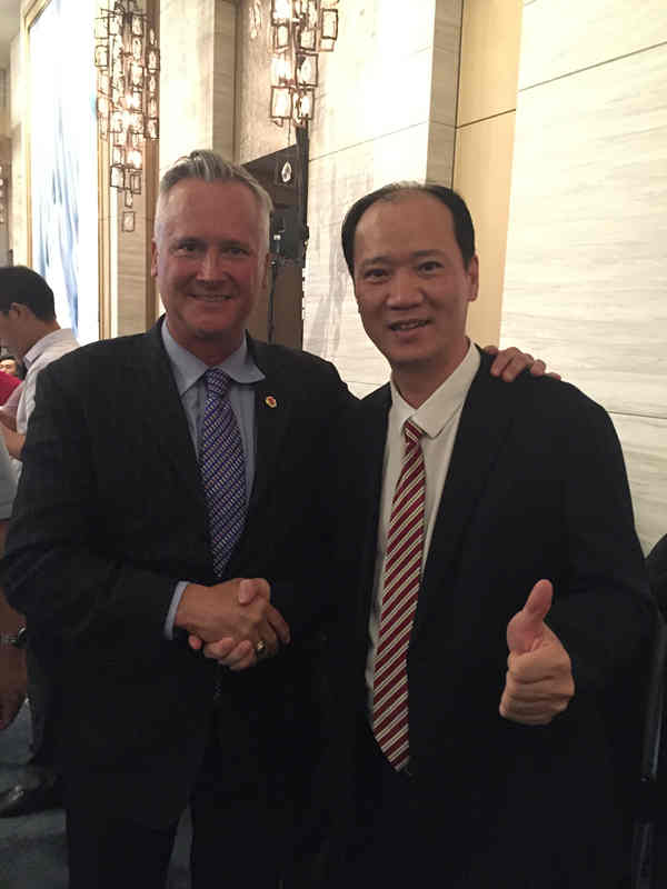 正夫控股董事长杨瑞锋先生与国际知名演讲大师、首席营销官蒂姆·塞米特合影
