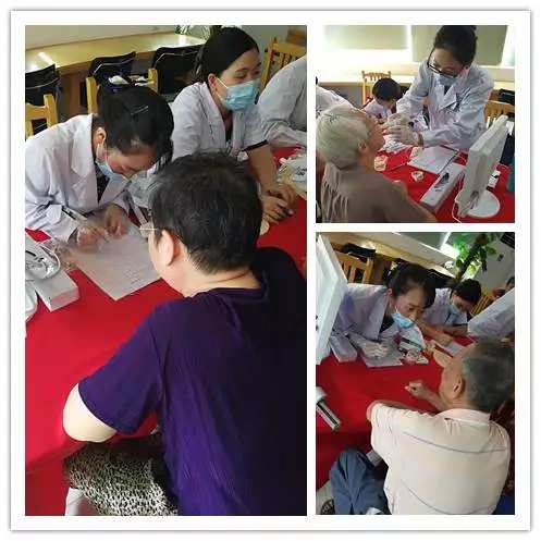 活动开始后,老人在福利院的细心安排下前来咨询,其中包含深圳首批建设者。问诊、检查、测血糖、量血压等义诊工作在正夫口腔医生的耐心下有条不紊的进行着。
