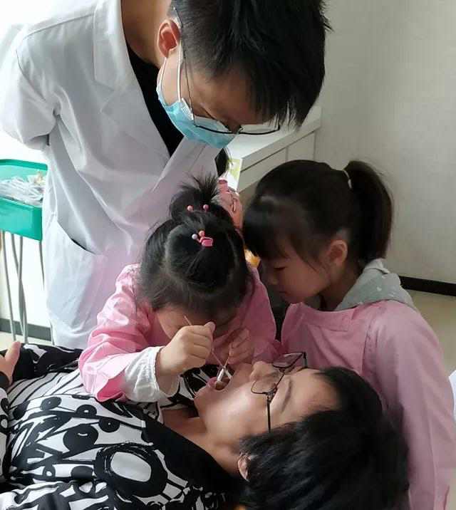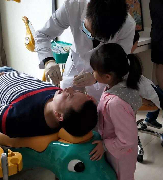 检查完牙齿后,医师就示范了如何给“病人”检查口腔,培训完毕后的小牙医终于要上岗了。让小牙医给父母检查口腔,小牙医认真检查的样子,好有范~