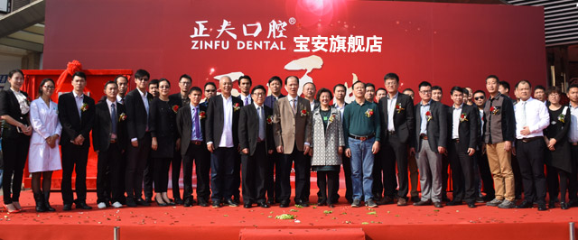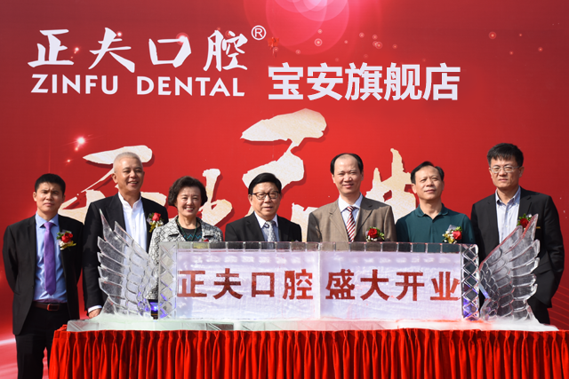 2016年12月10日,正夫口腔宝安旗舰店璀璨开幕!正夫口腔董事长杨瑞锋先生、中华口腔医学会名誉会长樊明文先生、中华口腔医学会秘书长王渤女士、前海红鼎基金董事长陈校良先生、上海品瑞医疗器械设备有限公司董事长周龙华先生、原深圳市罗湖区卫生局副局长董书贤先生等一行到场祝贺并共同见证了正夫口腔宝安旗舰店隆重的开业庆典!