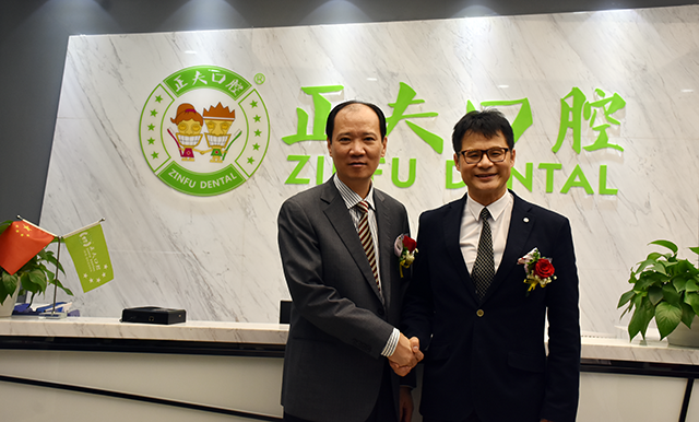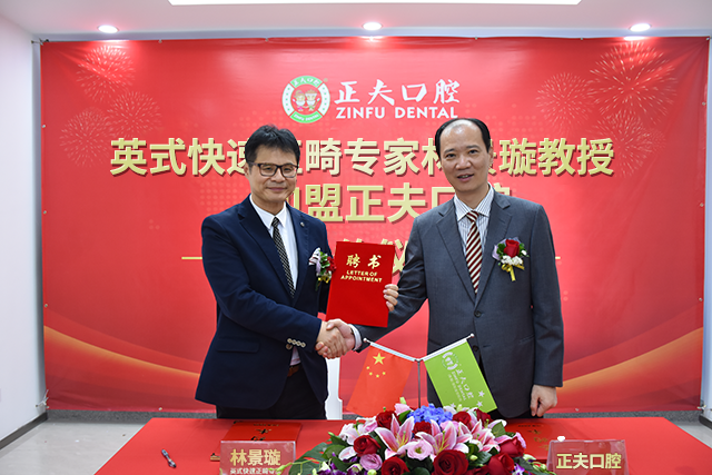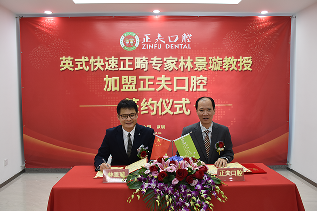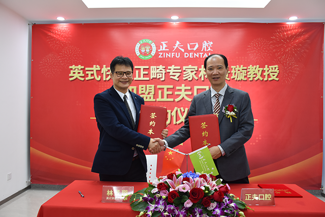 正夫口腔集团董事长杨瑞锋与英式快速正畸专家林景璇教授共同签署协议书