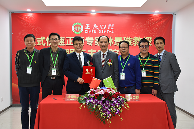 2017年1月4日,英式快速正畸专家林景璇教授加盟正夫口腔签约仪式,在正夫口腔总部举行。英式快速正畸专家林景璇教授与正夫口腔集团董事长杨瑞锋、执行副总张哲人,医疗副总张峻维、财务总监汪礼长、运营总监魏衍刚、门诊管理部总监黄骏祖等共同出席了本次活动。