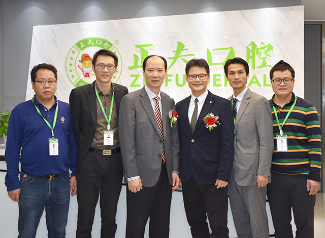 正夫口腔集团董事长杨瑞锋、正夫口腔高层领导和林景璇教授合影