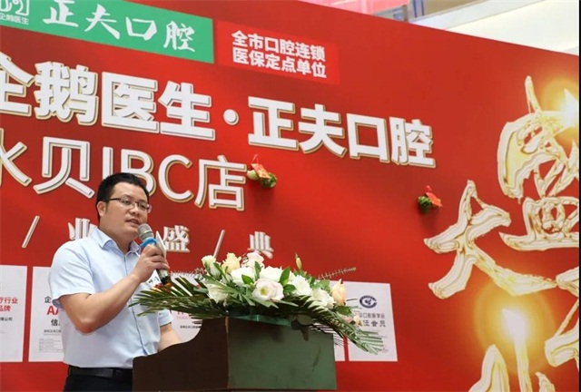 随后,企鹅医生•正夫口腔水贝IBC店院长张荣水先生做了精彩发言。张荣水先生首先感谢现场嘉宾和现场朋友的到来,并对大家的到来表示热烈的欢迎,他说道:“企鹅医生·正夫口腔全体员工始终会保持一颗敬业之心,脚踏实地,兢兢业业,诚诚恳恳,为百姓提供专业的口腔服务,为牙科患者创造健康与快乐,提升市民的生活质量而不懈努力。”